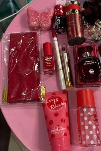 پک هدیه روز زن (هدیه یلدا)هدیه ولنتاین لوازم آرایش صورتی لاکچری همراه جعبه