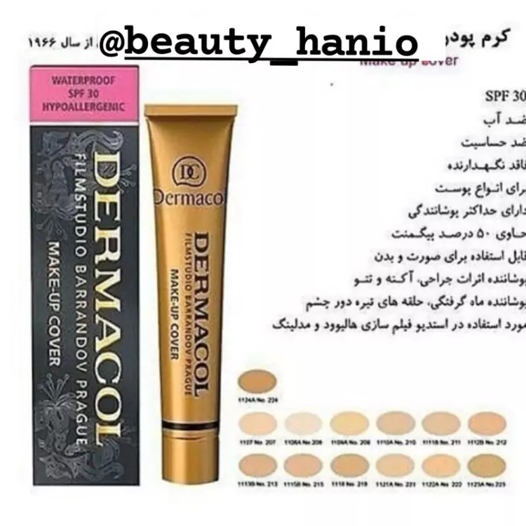 کرمپودر گریم و عروس درماکول اصل دارای بافت نرم و سبک دارایSPF30 پوشش دهی بالا،مات،طبیعی و یکدست ضد حساسیت و ضد آب تست و تأیید شده توسط کلینیک های تخصصی پوست قابل استفاده جهت پوشاندن تیرگیهای زیر چشم پوشانندگی کامل جوش ها و کبودیهای پس از عمل جراحی و تاتو قابل استفاده برای صورت و بدن مناسب برای انواع پوست مناسب برای گریم حرفه ای ترکیب این محصول آرایشی عاری از هرگونه مواد حساسیت زای پوستی همراه با خاصیت ضد آفتاب خود با spf30 با پوشش فوق العاده حتی با لایه نازک قابل استفاده برای استفاده در آ رایش حرفه ای برای عکاسی،آ رایش حرفه ای ،فیلم برداری،مدل و فستیوالهای شادی