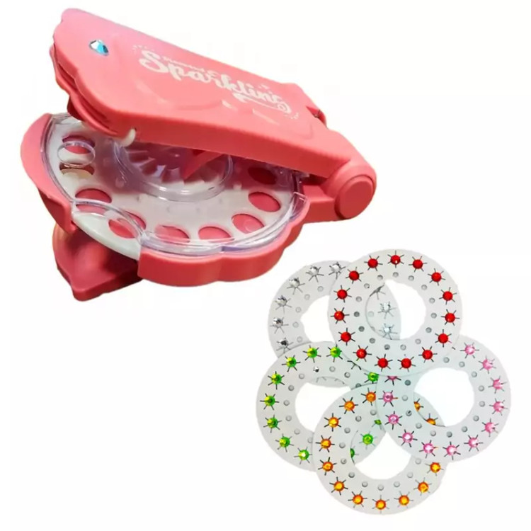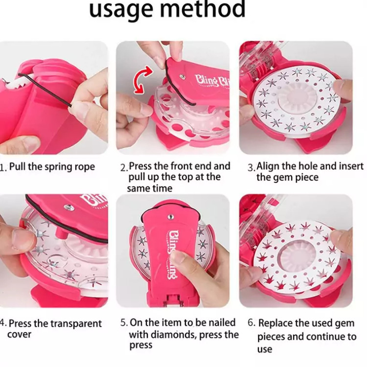 شامل یک عدد دستگاه نگین زن + 12 حلقه 15 عددی ( 180 عدد ) نگین با رنگ های آبی ، صورتی و سفید بنفش سبز …