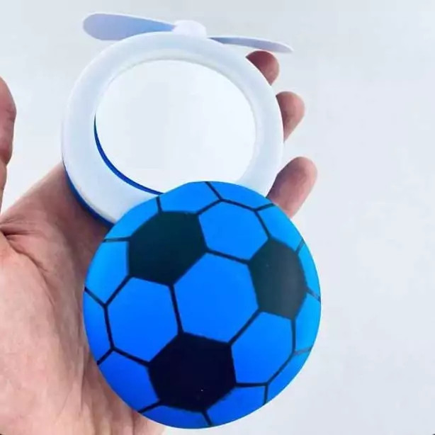 مینی فن و آیینه ال ای دی دار طرح توپ چهل تیکه دارای فن برای خشک کردن: لاک، میکاپ، ماسک صورت، چسب مژه می باشد این محصول دارای طراحی فانتزی و خاص است.