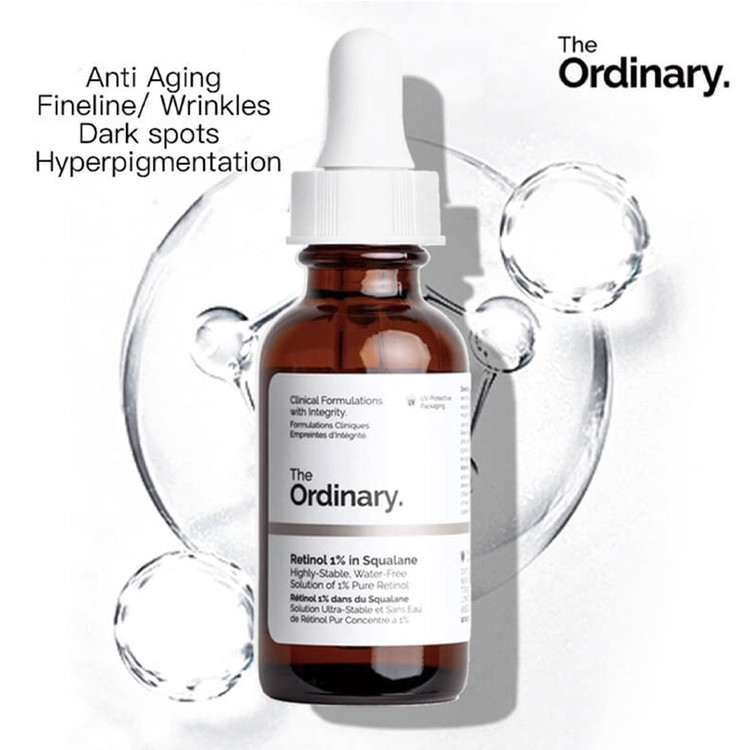 سرم رتینول اوردینری با حجم 30 میلی لیتر، یک سرم جوانساز حاوی رتینول اسکوالان می باشد. این سرم حاوی رتینول خالص بوده و علائم پیری و خطوط و چروک ریز صورت را کاهش می دهد. سرم رتینول The Ordinary انواع لکه ها و تیرگی های ناشی از آفتاب و افزایش سن و … را بهبود داده و پوست را روشن می کند. این سرم همچنین تاثیر زیادی بر روی یکدست شدن ناهمواری های بافت پوست داشته و پوستی سالم و شاداب به ارمغان می آورد.