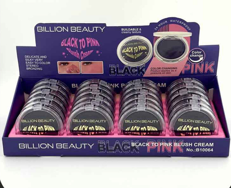 دیدن محصولات مرتبطرژگونه جامد جادویی و حرارتی بیلیون بیوتی رنگ ظاهری بی رنگ و مشکی( تغییر رنگ به صورتی ) و معروف به رژگونه جادویی با بافت ژله ای مانند و صورتی ملایم ( با توجه به دمای بدن هر فرد ) و پخش آسان با پوشش دهی عالی می باشد.
