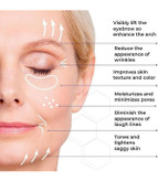 جوانسازی پوست مسن و کاهش چین و چروک ها توسط مجموعه بیوممتیک پپتیدها لیفت روشن کننده پوست و ضد لک احیای پوست خشک و کدر بوسیله افزایش تکثیر سلول ها از بین بردن چین و چروک از بین بردن جای جوش و اسکار آبرسانی و بستن منافذ پوست توسط اسید هیالورونیک خالص حجم هر عدد 5 میل