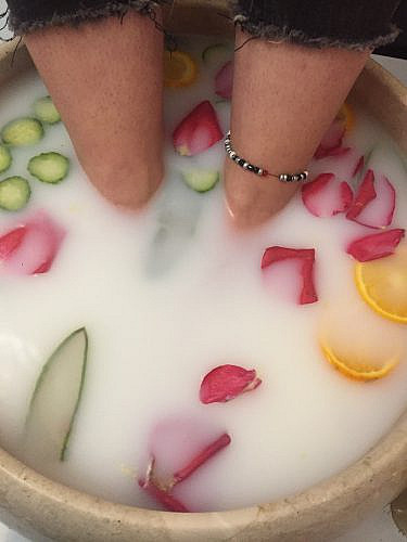 نصف پدیکور رو داخل یه تشت حمام پر از آب بندازید و پاهاتوم رو بذارید داخلش تا حسابی پاهاتون خنک و پاکسازی بشه و خستگیتون روزتون دربیاد???