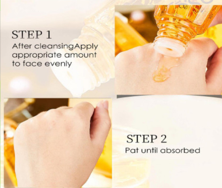3. پس از پاکسازی ، 2-3 قطره از مقدار مناسب مایع اعمال شده به صورت یا چشم را بمالید ، به آرامی ماساژ دهید تا جذب شود.